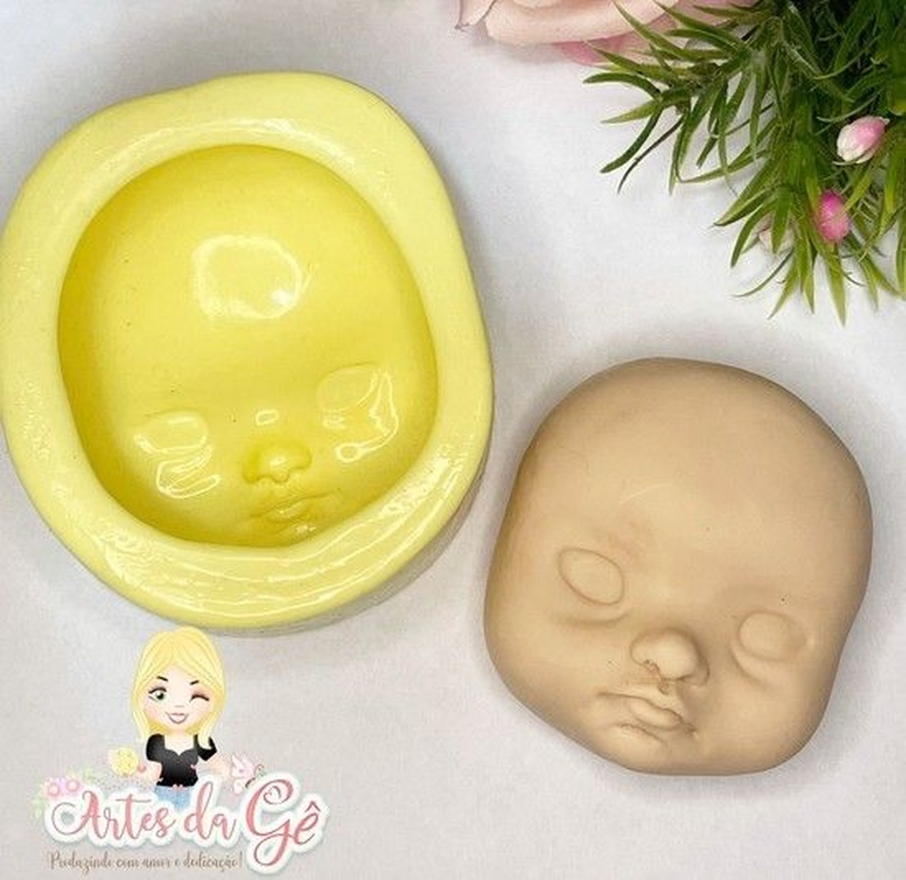 Molde de silicone usado em biscuit e confeitaria. Cabeça com rostinho modelado proporcional para bola de isopor 30/35.