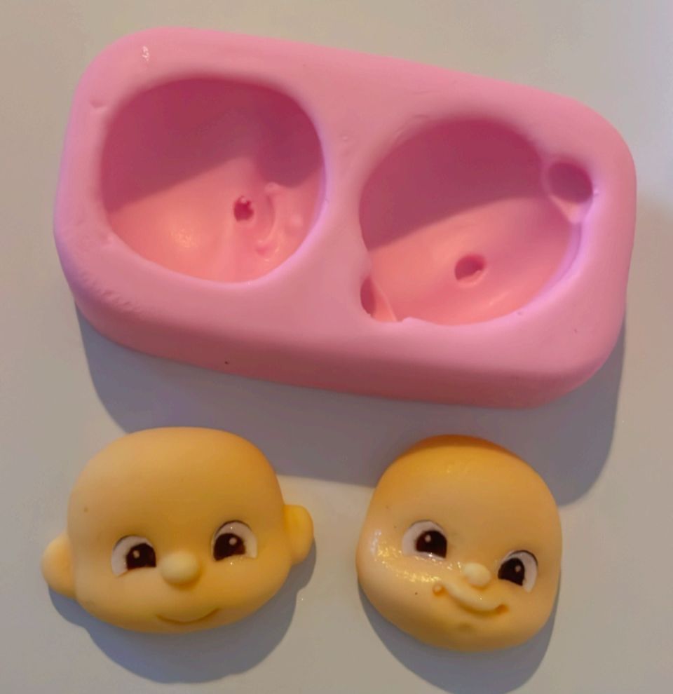 Molde com 2 cabecinhas fofas,1 já sai com orelha e ambas saem com nariz.