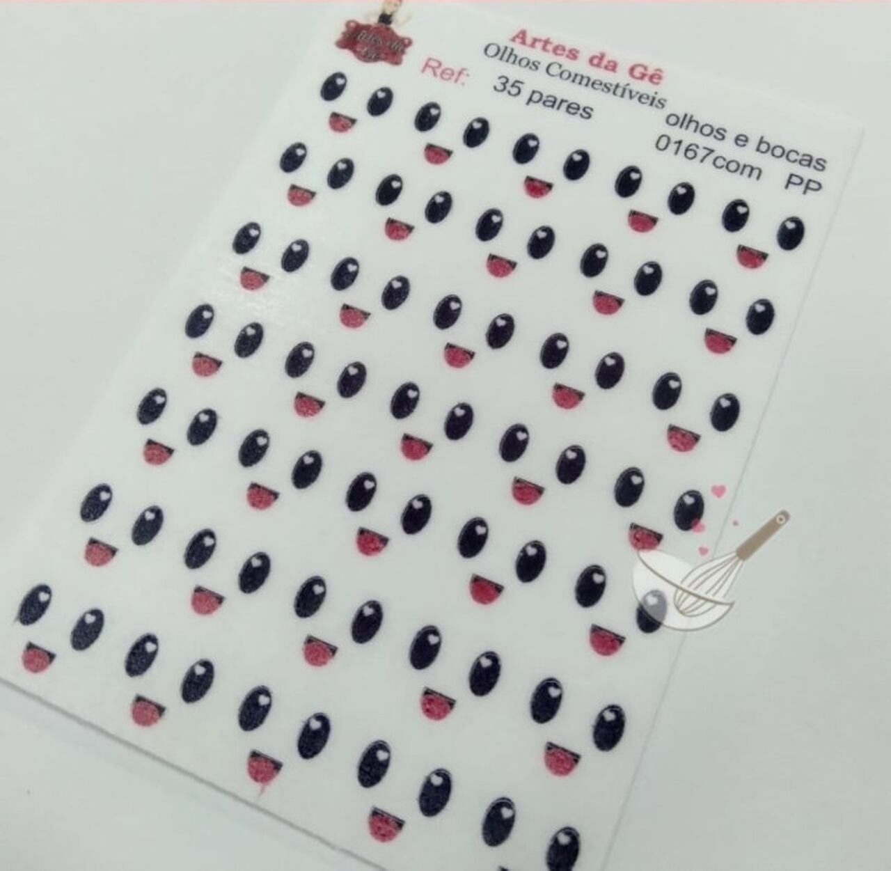 Cartela com 35 pares produzidos em papel de arroz para aplicação en doces de pasta americana e de leite ninho.