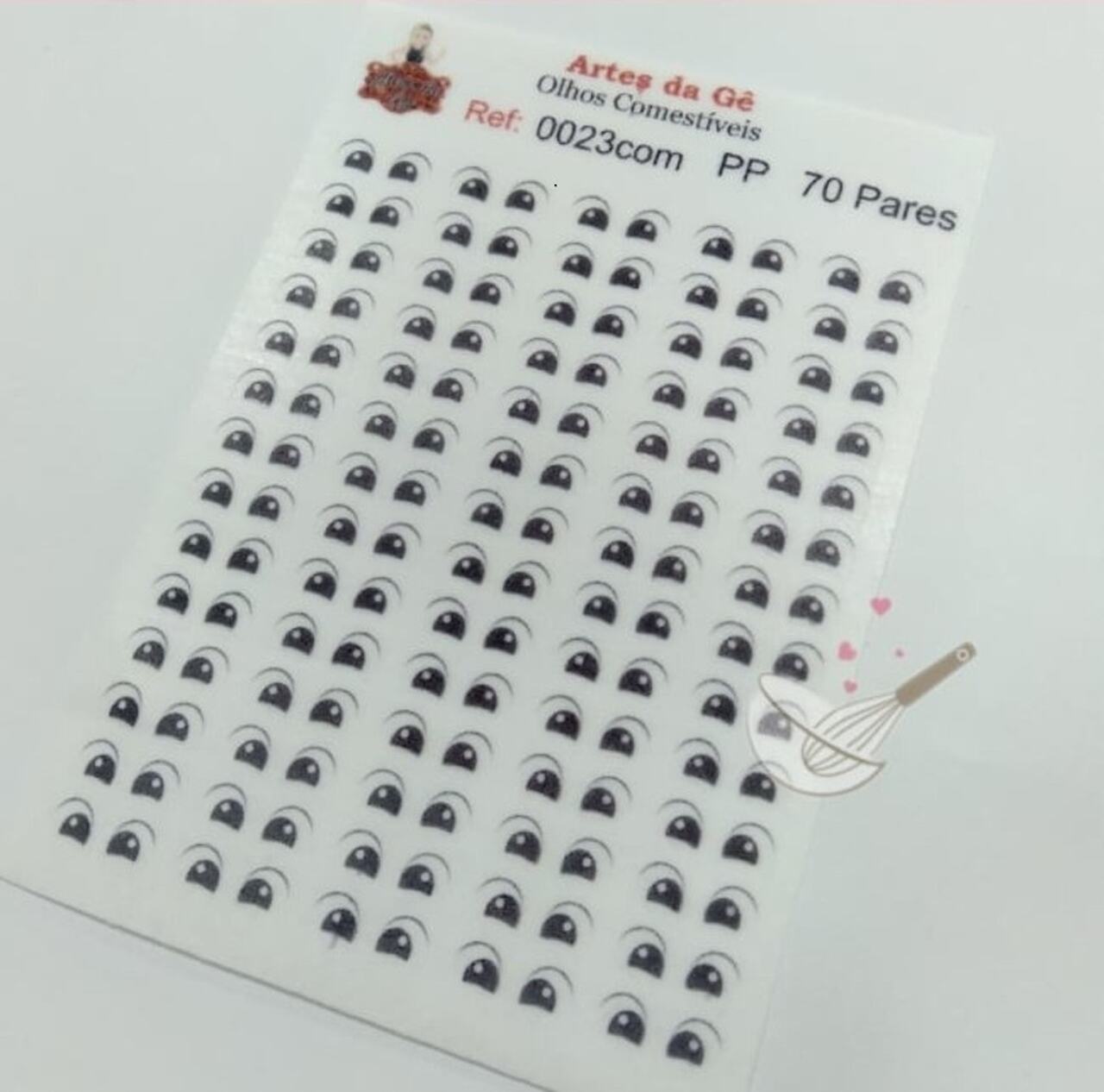 Cartela com 70 pares produzidos em papel de arroz para aplicação en doces de pasta americana e de leite ninho.