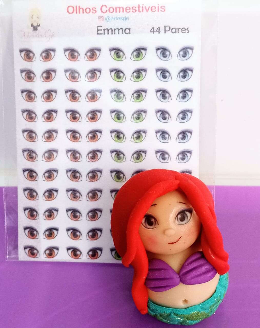 Cartela de comestíveis com 44 pares produzidos em papel de arroz para aplicação em doces de pasta americana e de leite ninho.