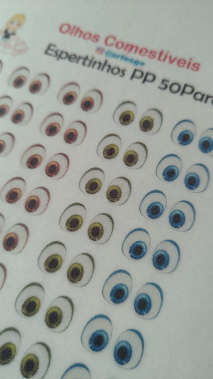Cartela com 50 pares produzidos em papel de arroz para aplicação em doces de pasta americana e de leite ninho.