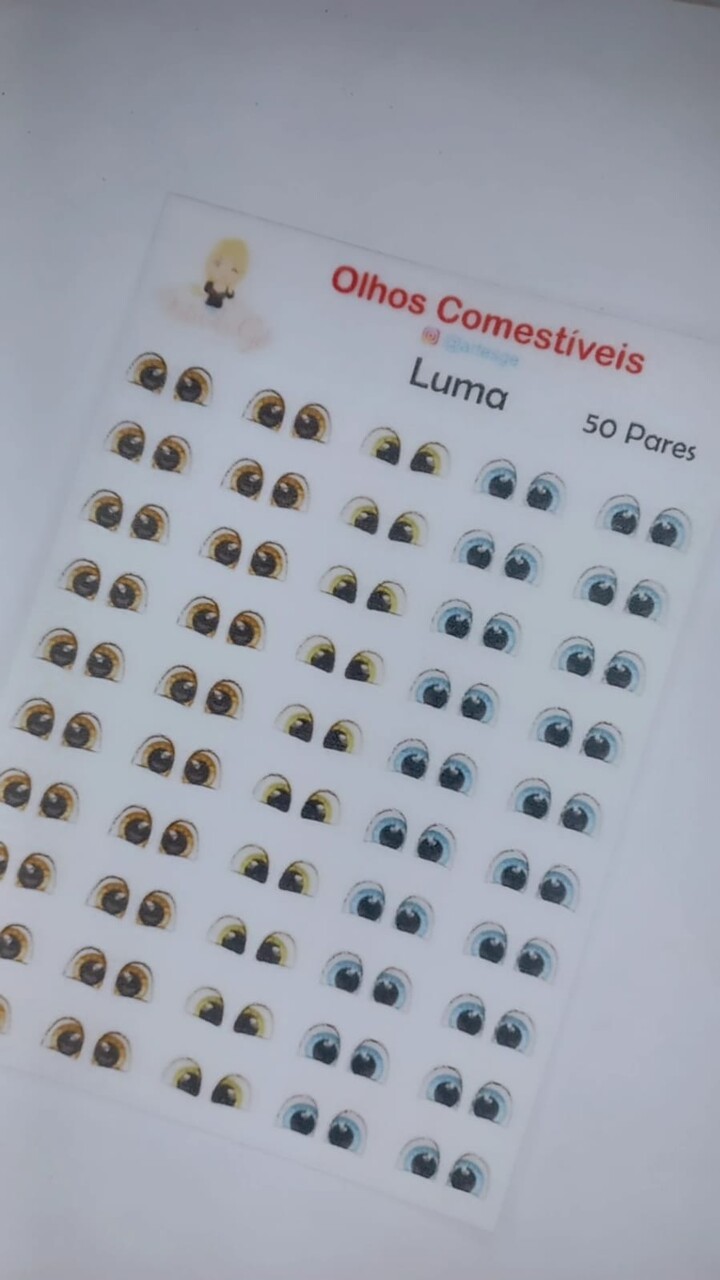 Cartela de comestíveis com 50 pares produzidos em papel de arroz para aplicação em doces de pasta americana e de leite ninho.