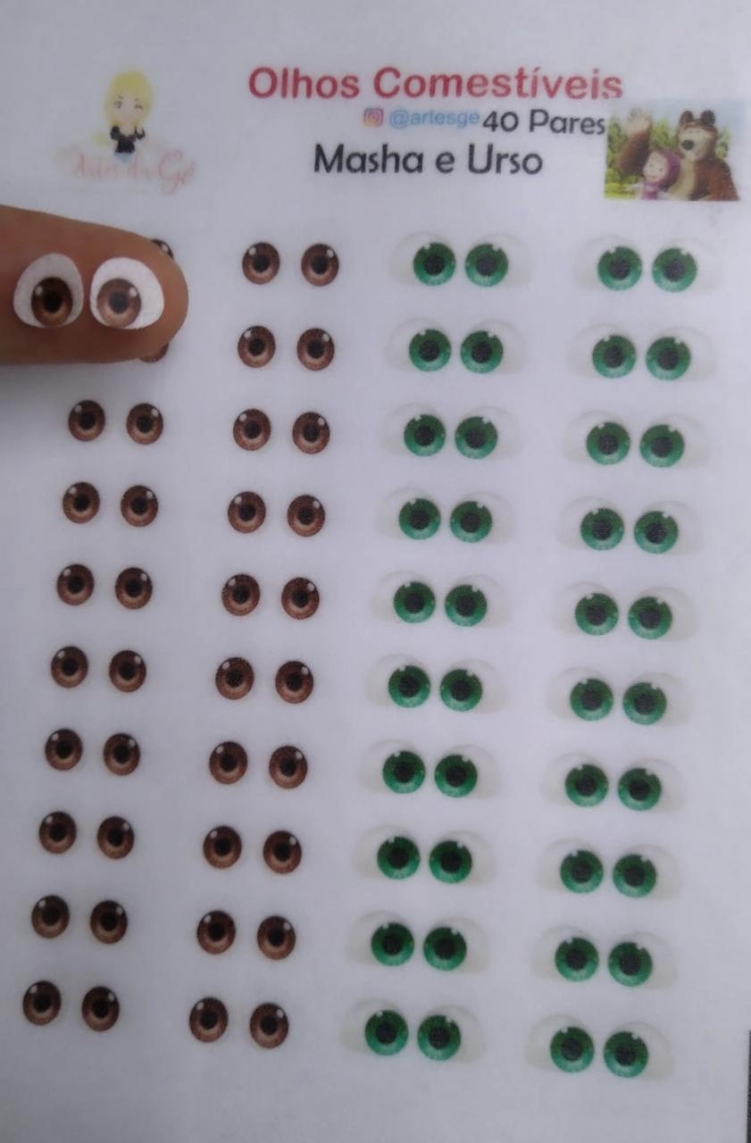 Cartela de comestíveis com 40 pares produzidos em papel de arroz para aplicação em doces de pasta americana e de leite ninho.