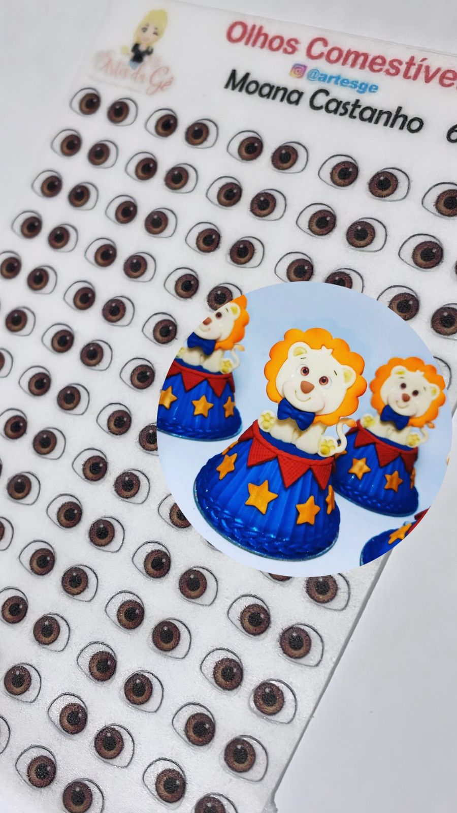 Cartela com 65 pares produzidos em papel de arroz para aplicação em doces de pasta americana e de leite ninho.