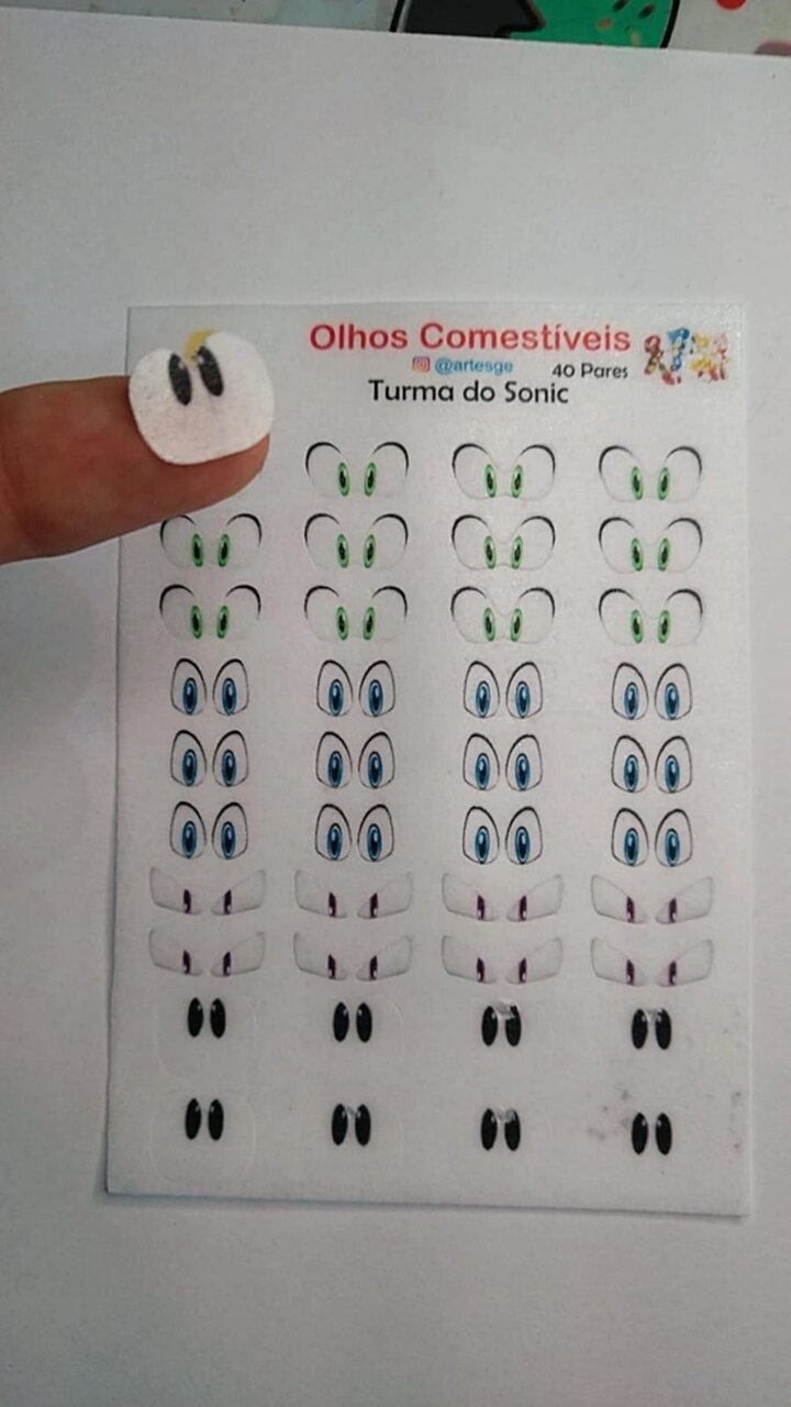 Cartela com 40 pares produzidos em papel de arroz para aplicação em doces de pasta americana e de leite ninho.