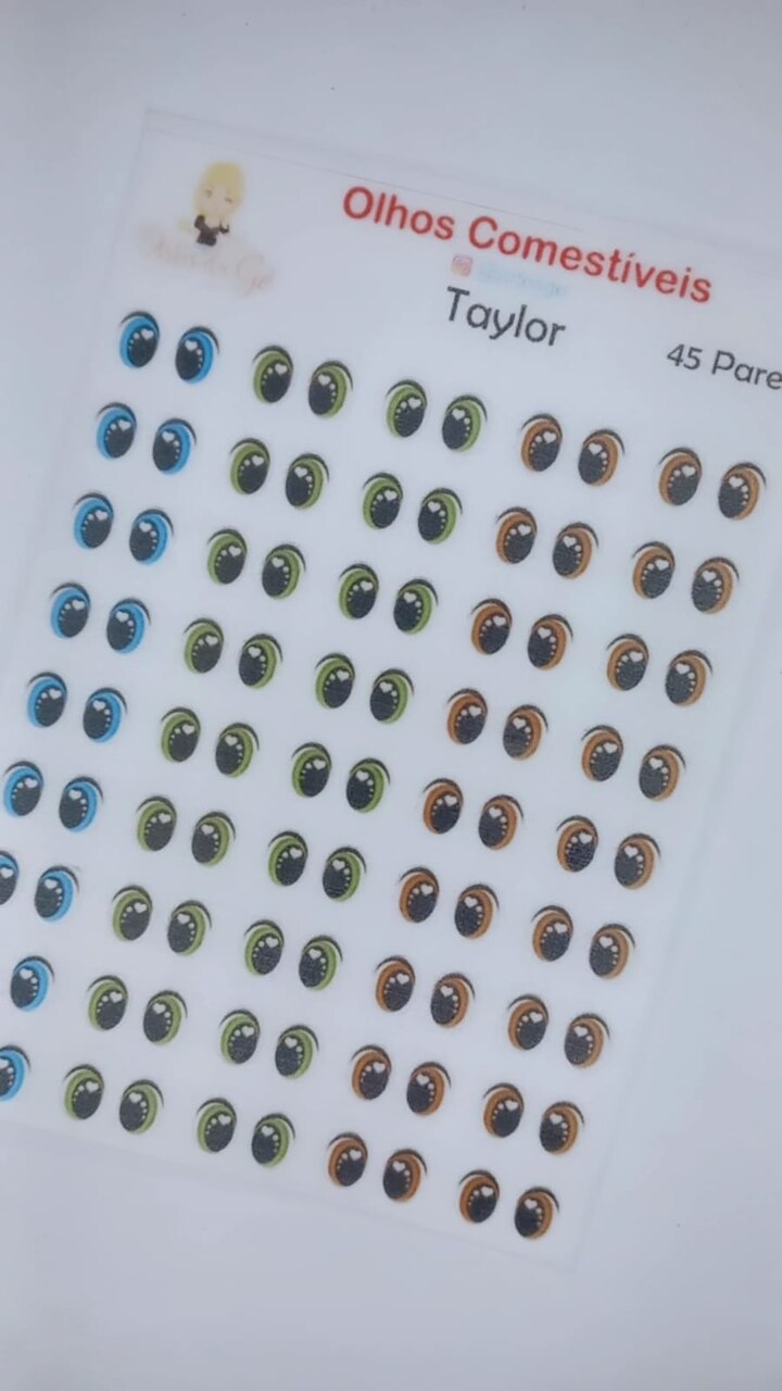 Cartela de comestíveis com 45 pares produzidos em papel de arroz para aplicação em doces de pasta americana e de leite ninho.